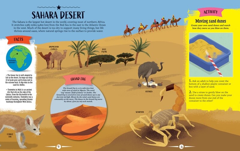 Africa is the second-largest continent on Earth. Within that huge landmass are a variety of cultures, cities, animals, and habitats to explore and begin to understand! This colorfully illustrated book takes readers on a journey through Africa, highlighting its regions like northern Africa, the animals that make their homes in these places, and explores some of African's major cities. Maps and fact boxes accompany each spread to engage readers with even more information. Several activities invite readers to make their own sand dunes, paper parrot, and more. A quiz concludes the book to aid comprehension.