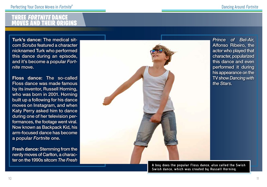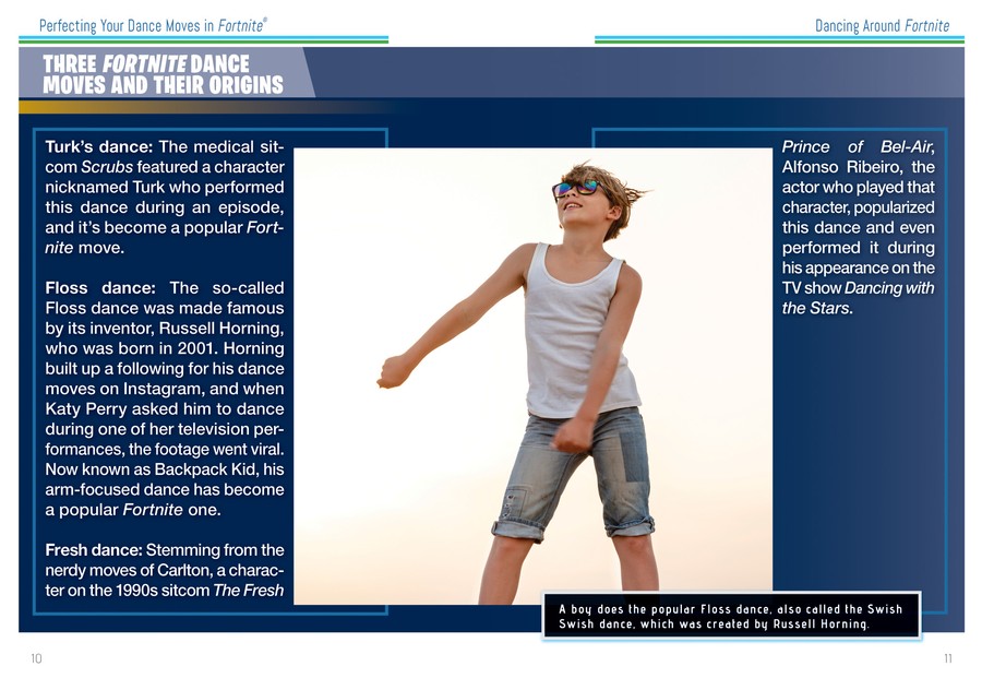 In a survival-focused game like Fortnite, danger lurks around every corner, which is why it's important to just cut loose sometimes. Luckily, this groundbreaking video game gives players a chance to try out a number of dance moves. This hip-shaking volume focuses on how dancing can be used strategically to a player's advantage. As a player levels up, they get access to more these moves, allowing them to bring to the game their own sense of style. Encourage your players to get out and practice their own dance moves, movement, and individuality.