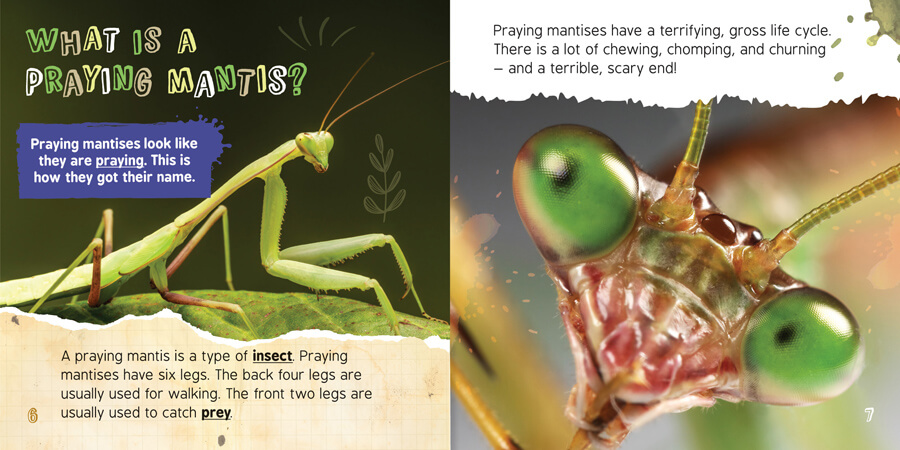 The life cycle of a praying mantis begins in a froth of eggs. If that doesn't sound gross enough, many of these insects' die when they are eaten by another praying mantis! Plus, there are plenty more gross things that happen in between! This gross life cycle makes for an exciting way to learn about key aspects of the elementary life science curriculum. Colorful photographs and engaging text support readers of many levels, while the high-interest subject matter holds their attention and encourages them to learn more about these insects.