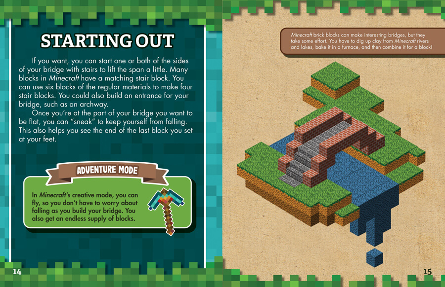 Imagine being able to create the Brooklyn Bridge or Sydney Harbor Bridge right from your computer. With Minecraft, you can—and even imagine your own bridges! This title is a great way for readers to learn just how to do that in their favorite game, as well as learn some important engineering concepts along the way. Examples of great Minecraft bridges are shown in unique illustrations, accompanied by tips and tricks to incorporate readers' own coding and creativity into the process.